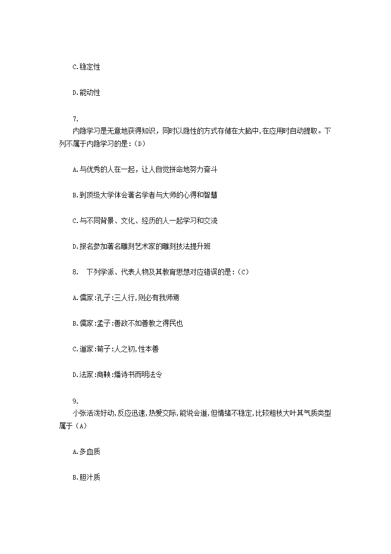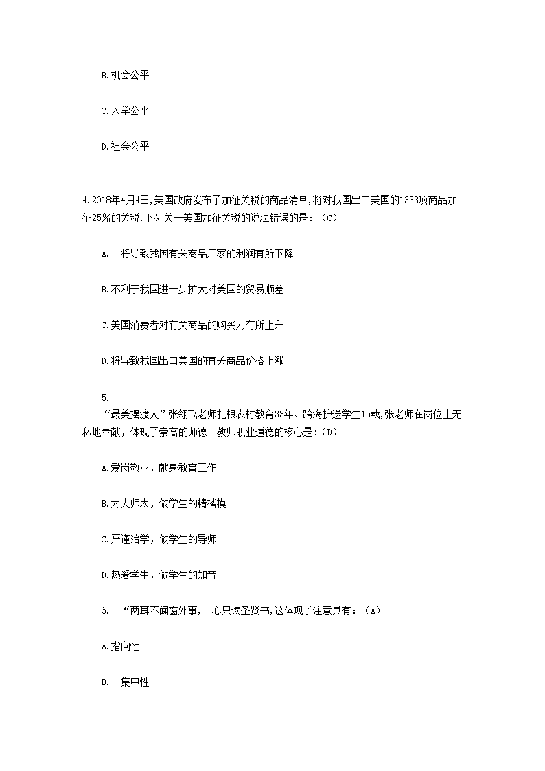 2018年湖北特崗教師招聘考試教育綜合知識(shí)真題及答案(Word版)