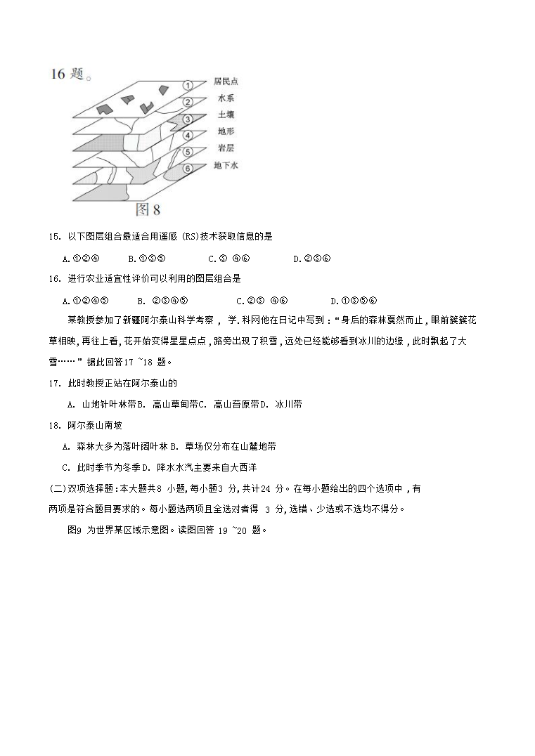 【文檔名稱】 2016江蘇高考地理真題及答案(Word版).doc