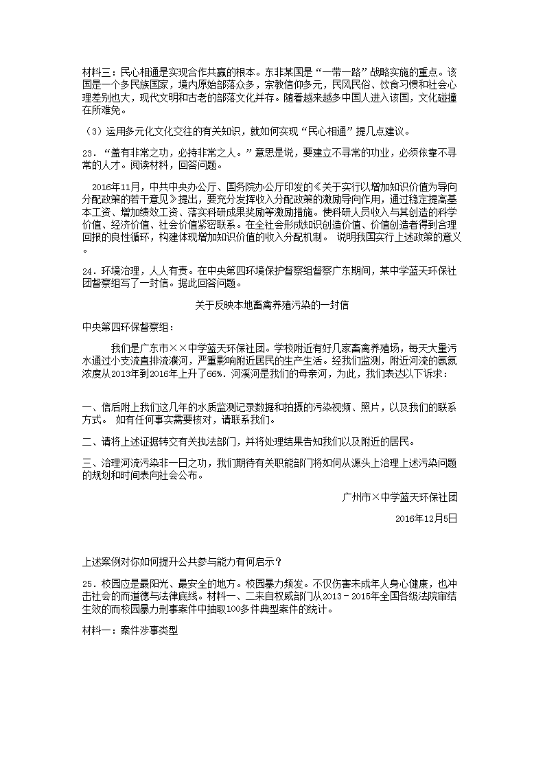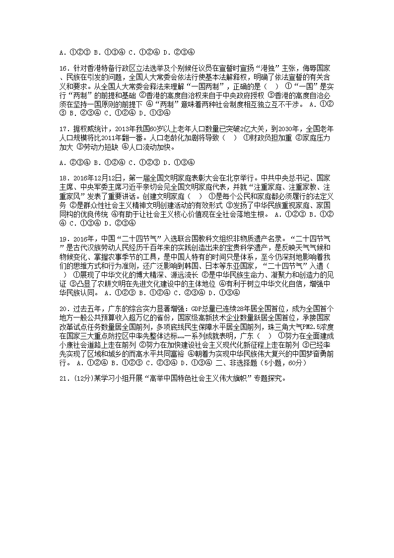 【文檔名稱】 2017年廣東省廣州市中考道德與法治試卷及答案(Word版).doc