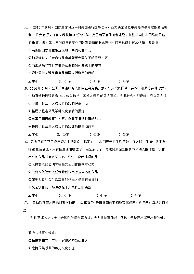 【文檔名稱】 2017年海南高考政治真題及答案(Word版).doc