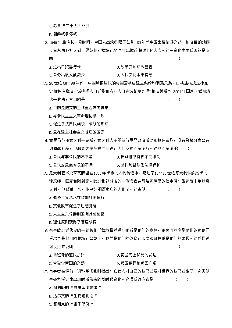 【文檔名稱】 2018年海南高考?xì)v史真題及答案(Word版).doc