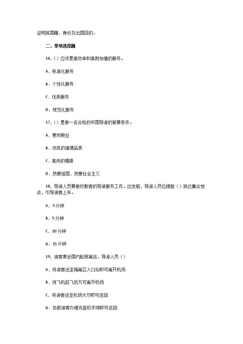 - 查看導(dǎo)游證考試全部真題>>