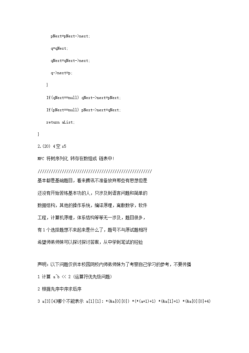 【文檔預(yù)覽】 無憂考網(wǎng)整理發(fā)布?xì)v年騰訊招聘考試面試試題匯總(Word版),前五頁預(yù)覽如下:
