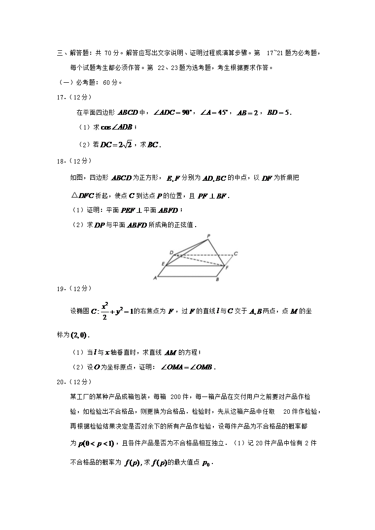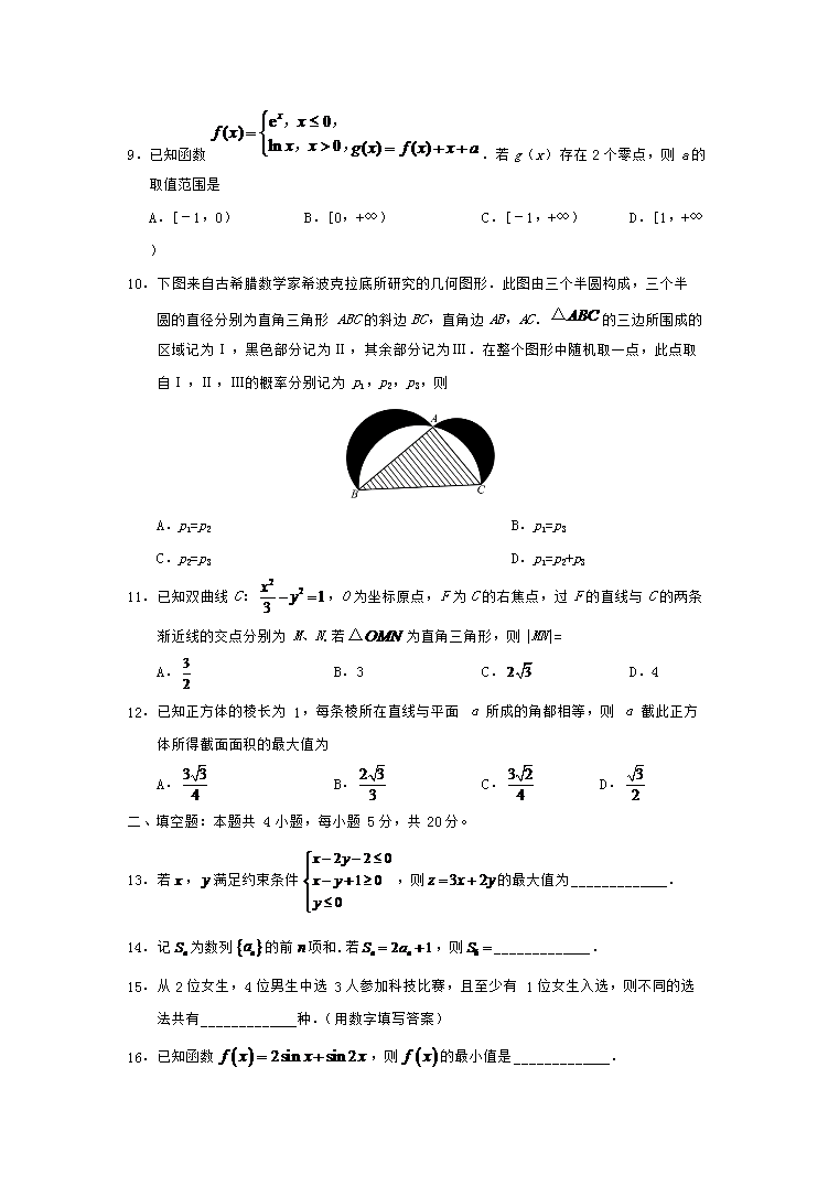 【文檔名稱】 2018山西高考理科數(shù)學真題及答案(Word版).doc