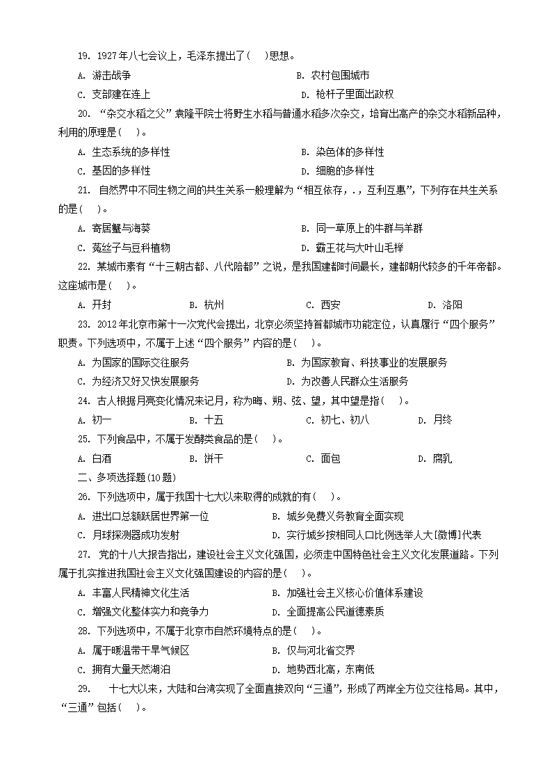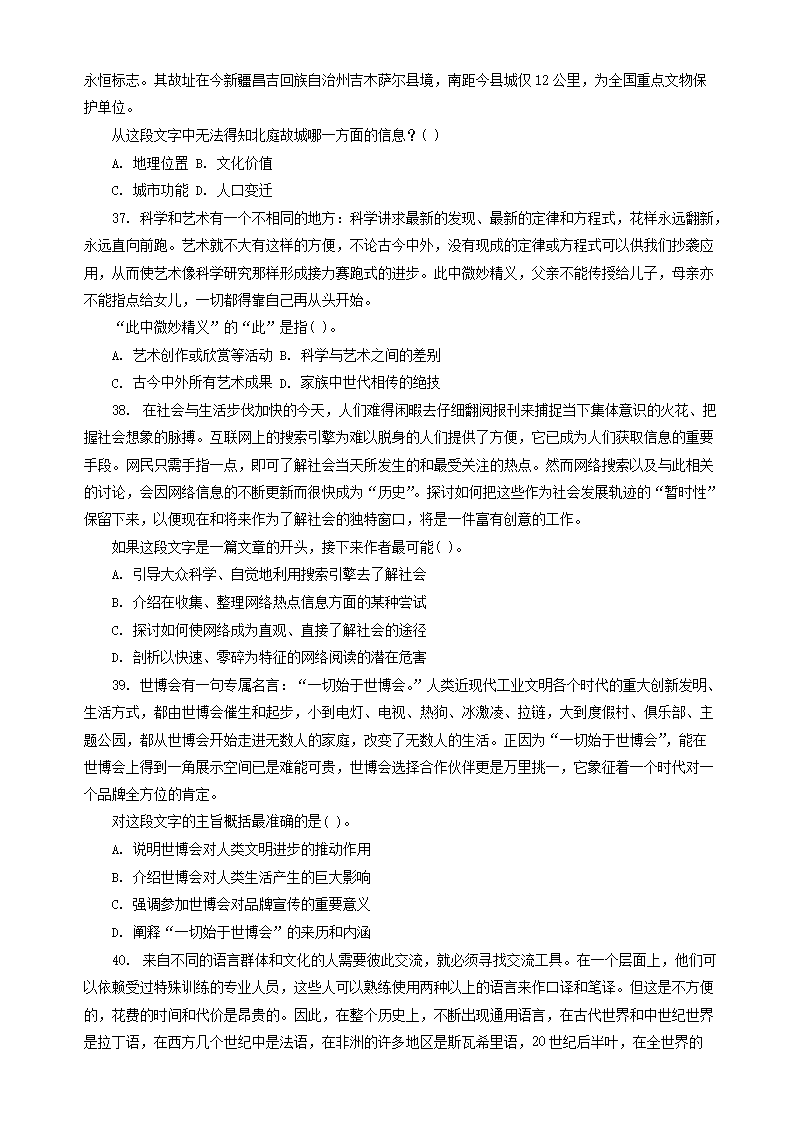 【文檔名稱】 2013年北京公務員行測考試真題及答案(Word版).doc