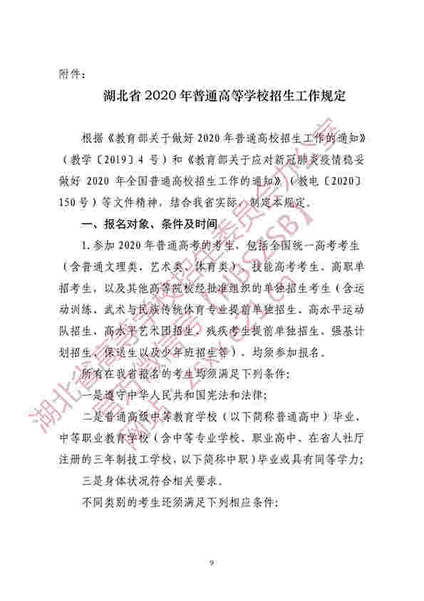 【#高考# #湖北省2020年普通高等學(xué)校招生工作規(guī)定#】®無憂考網(wǎng)高考頻道從湖北招生信息網(wǎng)了解到,湖北省2020年普通高等學(xué)校招生工作規(guī)定已公布,具體如下: