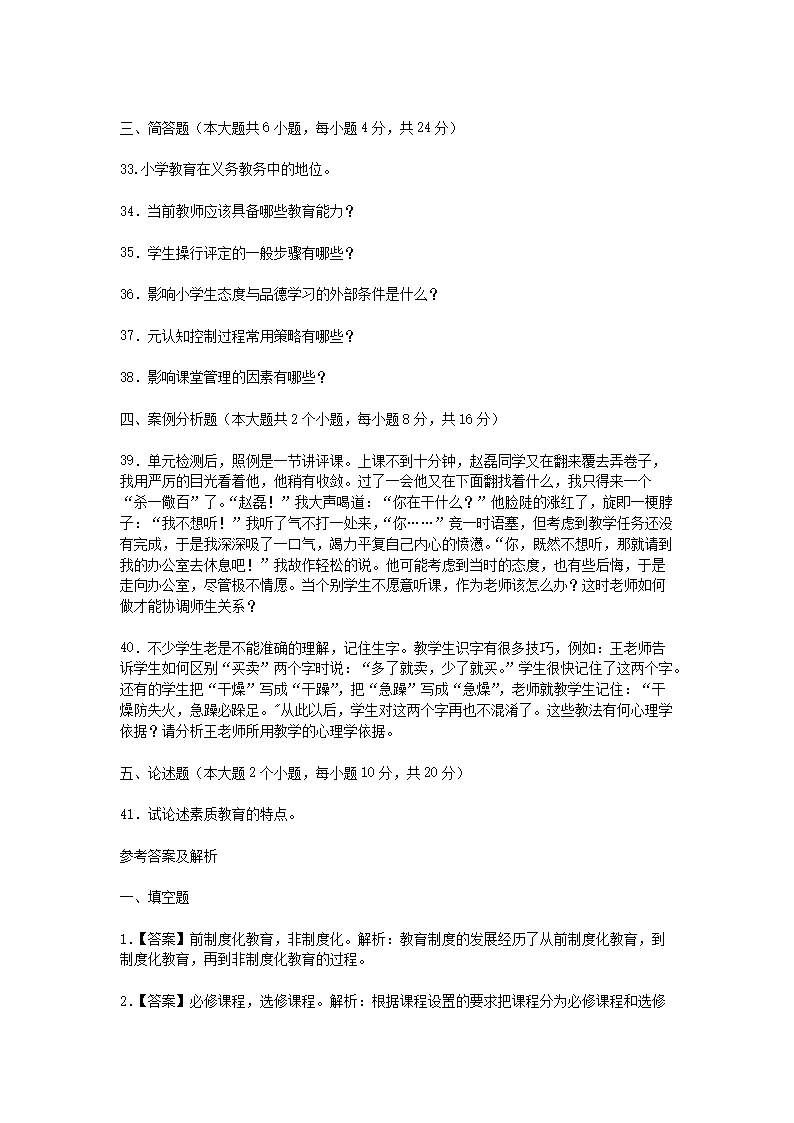 2016年7月17日云南昭通中小學(xué)幼兒園教師招聘考試真題及答案(Word版)