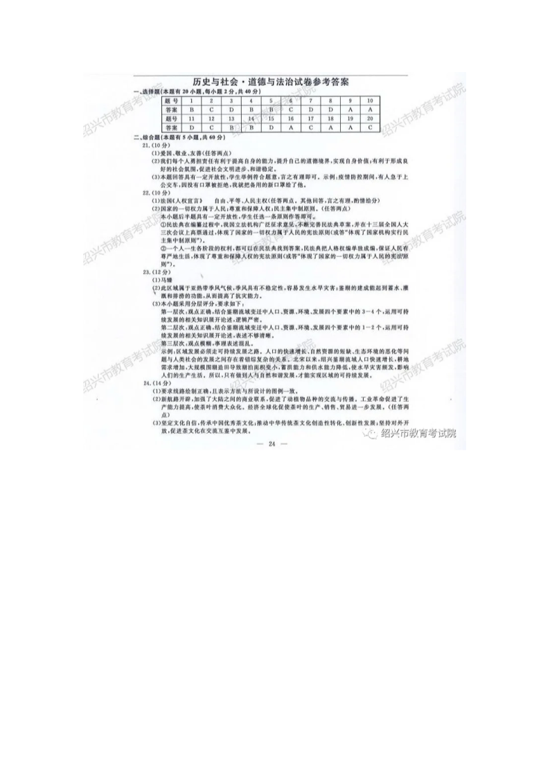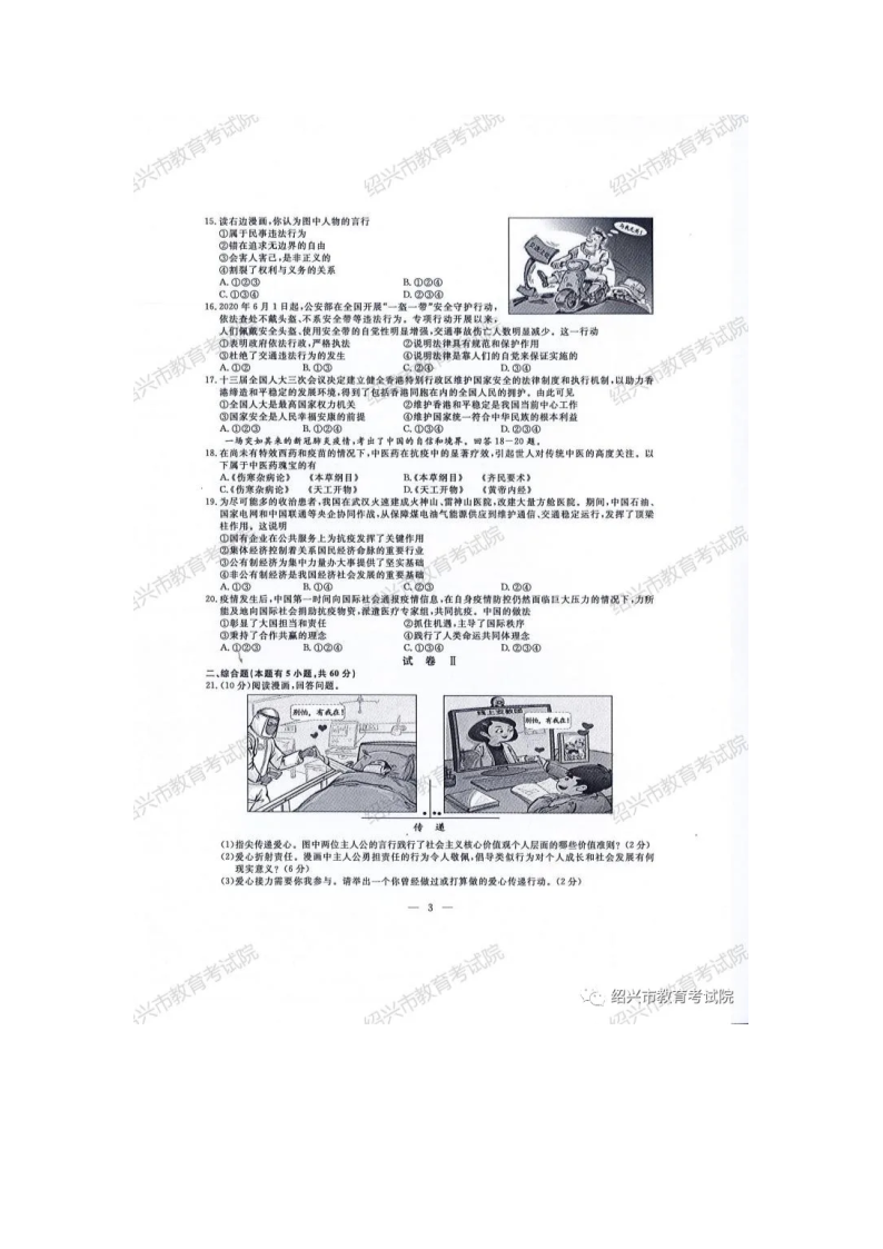 【文檔名稱】 2020年浙江紹興中考?xì)v史與社會(huì)•道德與法治真題及答案(圖片版).doc