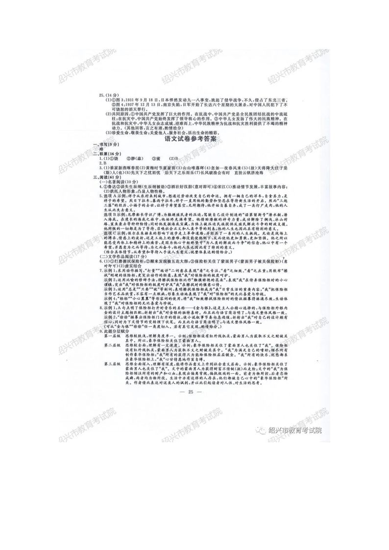 【文檔預(yù)覽】 無憂考網(wǎng)整理發(fā)布2020年浙江紹興中考?xì)v史與社會(huì)•道德與法治真題及答案(圖片版),前五頁預(yù)覽如下: