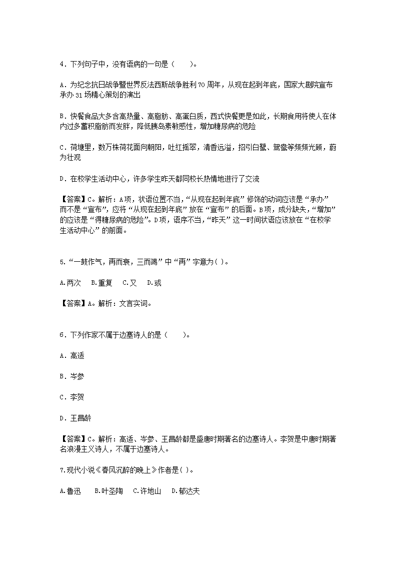 【文檔名稱】 2018云南特崗教師招聘考試初中語文真題及答案(Word版).doc