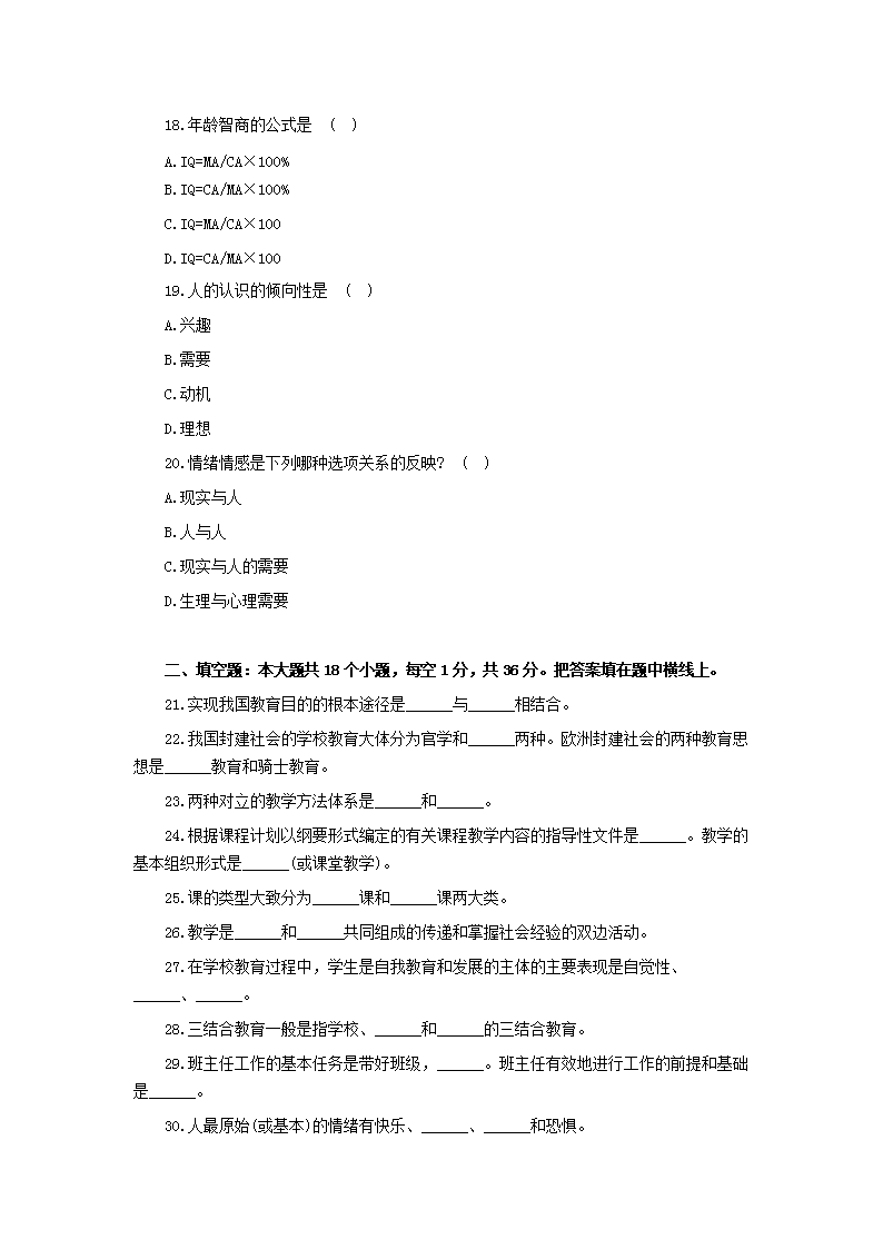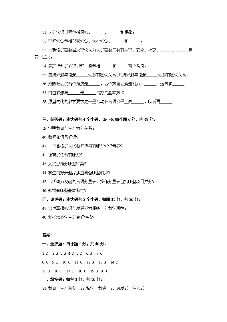 【文檔名稱】 2012云南特崗教師招聘考試試題及答案(Word版).doc