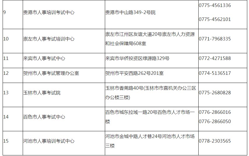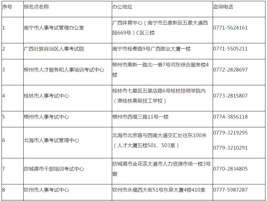 全區(qū)人事考試機(jī)構(gòu)現(xiàn)場審核地址及聯(lián)系方式如下: