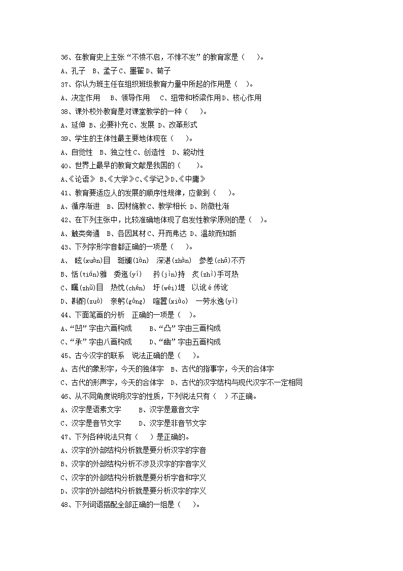 【文檔名稱】 2011年江西中小學(xué)教師招聘考試小學(xué)語文真題(Word版).doc