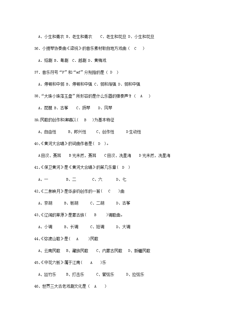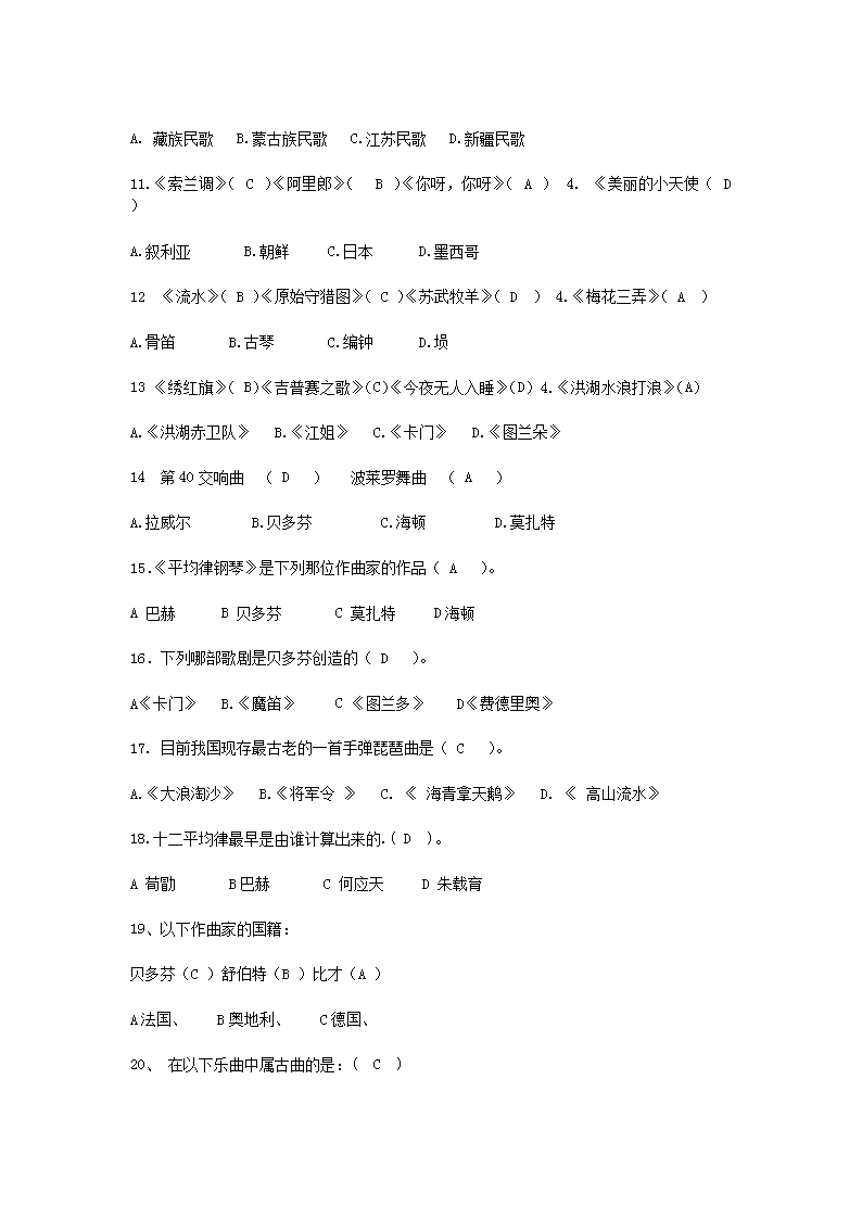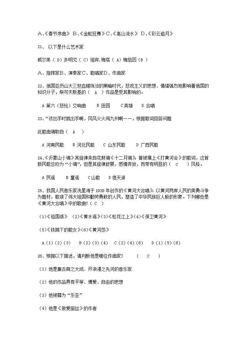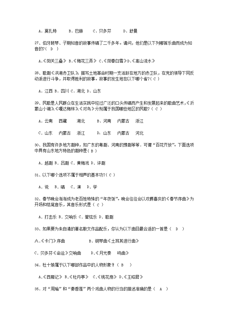 【文檔名稱】 2010年湖北武漢音樂教師招聘考試真題及答案(Word版).doc