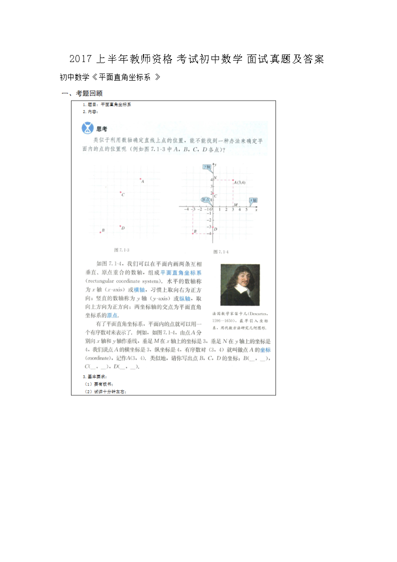 【文檔名稱】 2017上半年教師資格考試初中數(shù)學(xué)面試真題及答案(Word版).doc