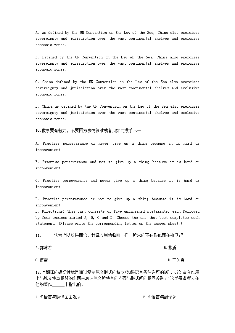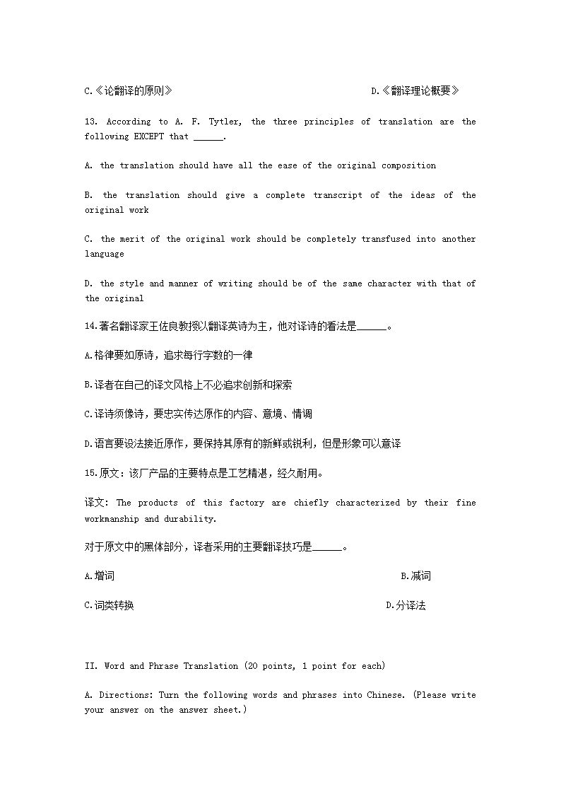【文檔名稱】 2010年4月全國高等教育自學(xué)考試英語翻譯真題(Word版).doc