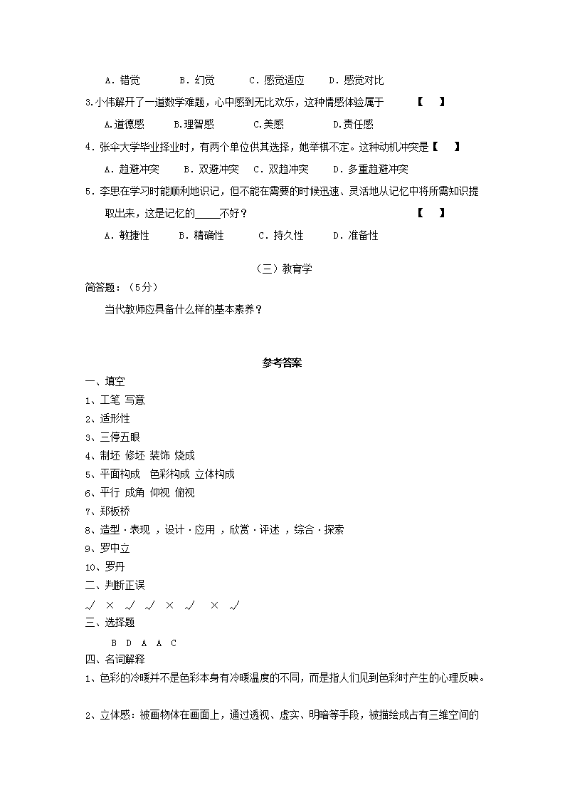 2011年河南鄭州中原區(qū)小學(xué)美術(shù)教師招聘考試真題及答案B卷(Word版)