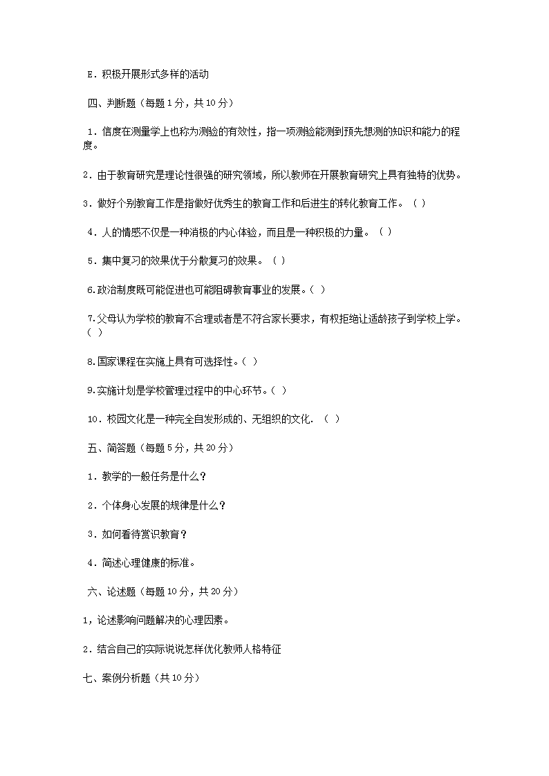 【文檔名稱】 2011年河北廊坊霸州市教師招聘考試真題(Word版).doc