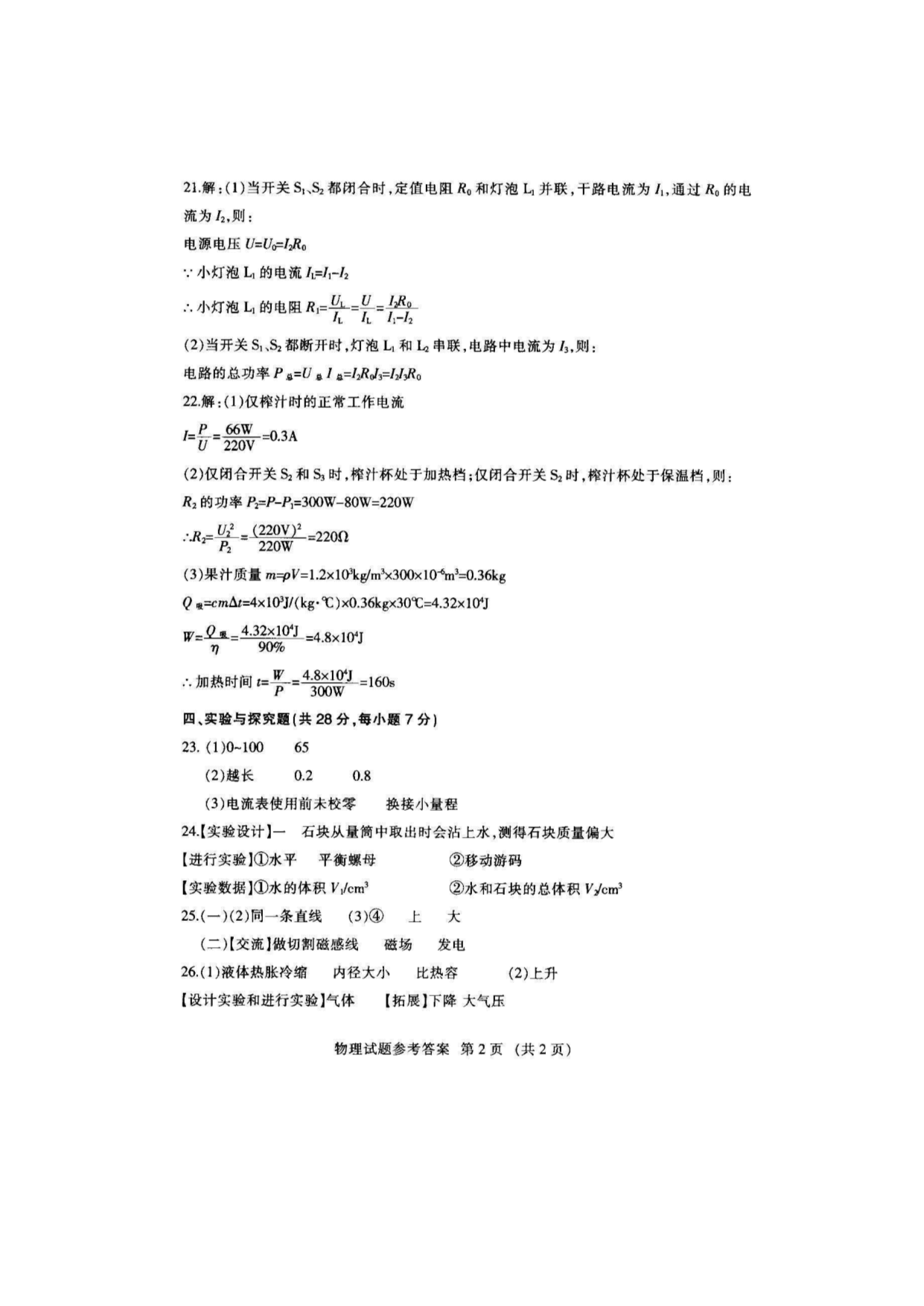 【文檔名稱】 2020年江西撫州中考物理試題及答案(圖片版).doc