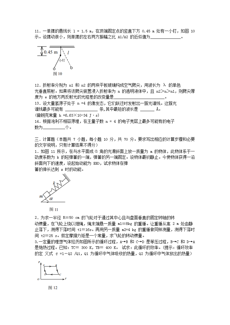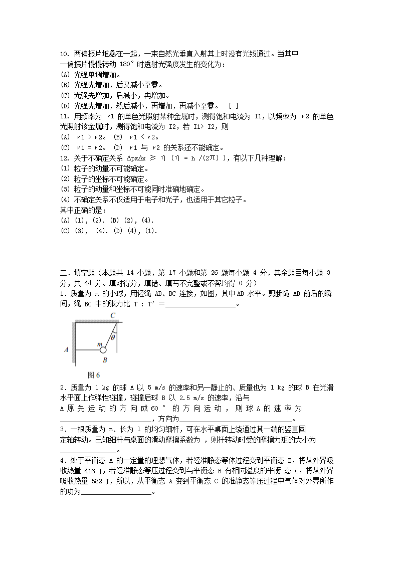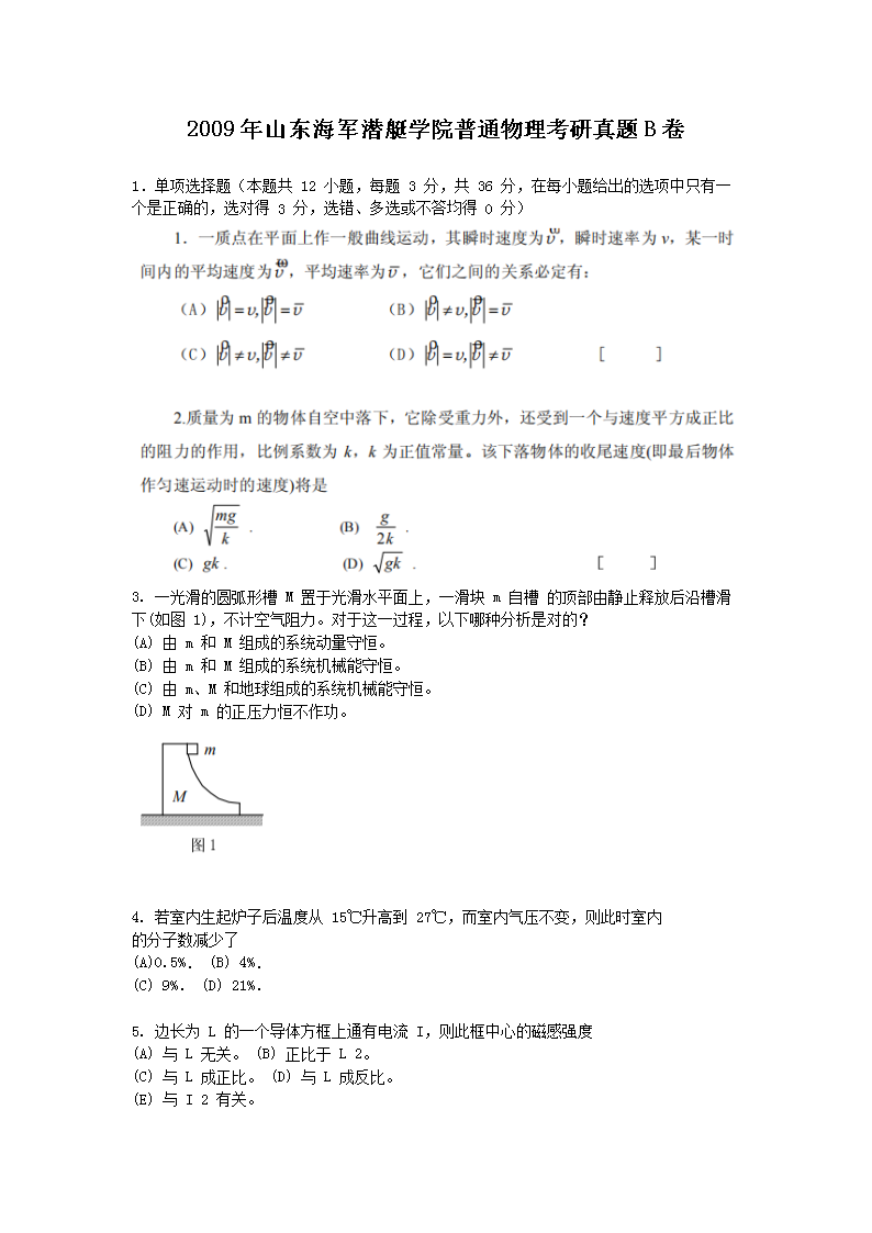 【文檔名稱】 2009年山東海軍潛艇學(xué)院普通物理考研真題B卷(Word版).doc
