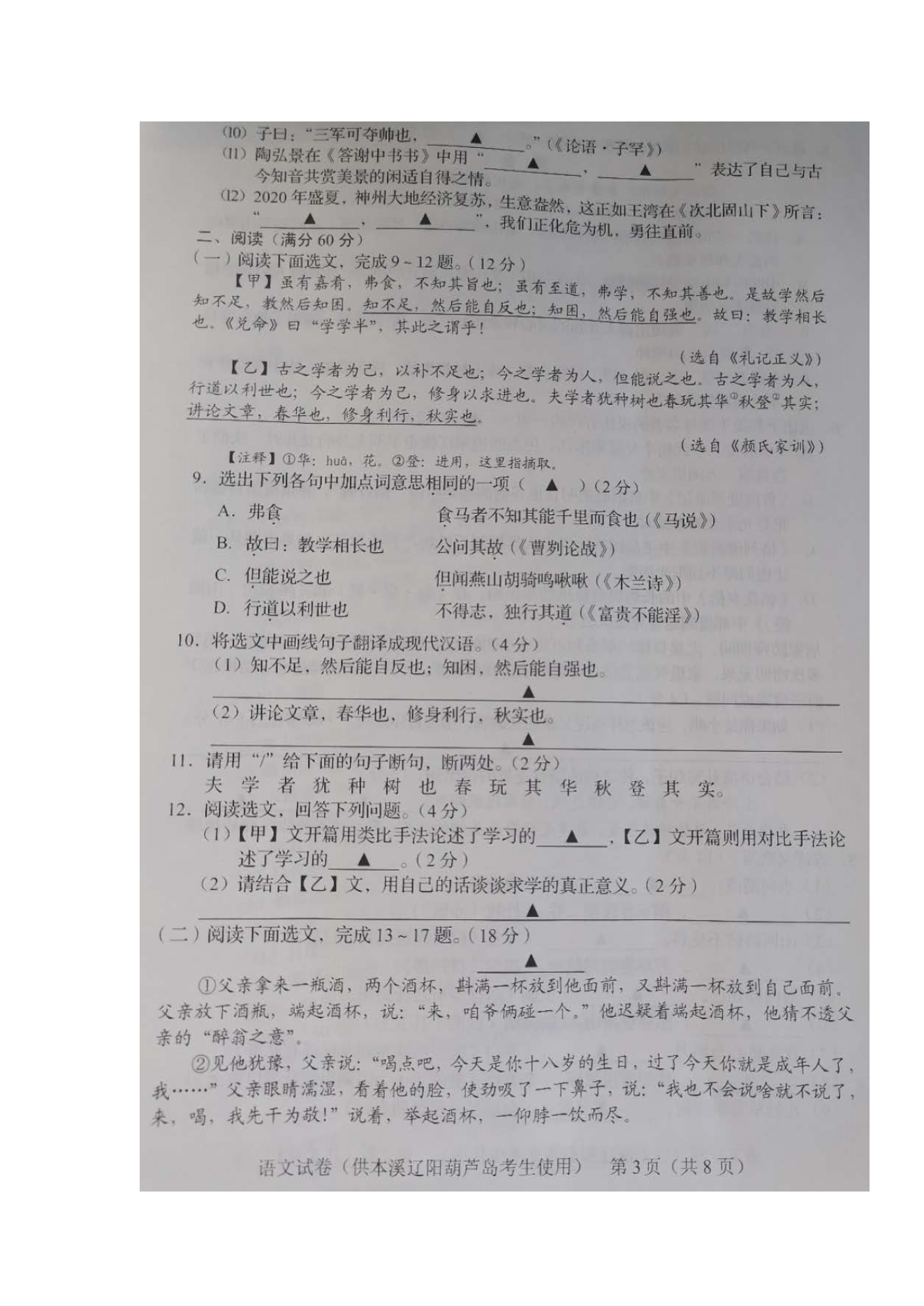 【文檔名稱】 2020年遼寧葫蘆島中考語文真題及答案(圖片版).doc
