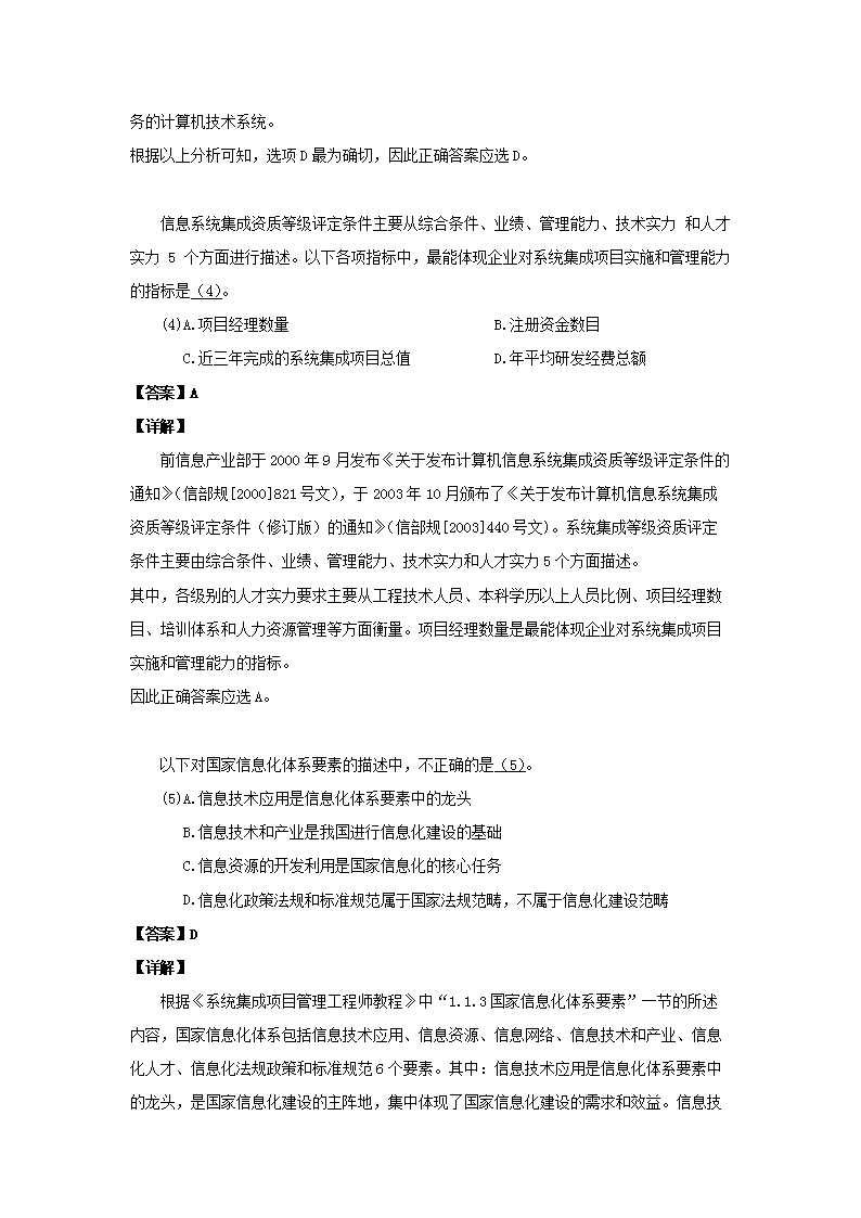 2011下半年系統(tǒng)集成項(xiàng)目管理師考試真題及答案-上午卷(Word版)