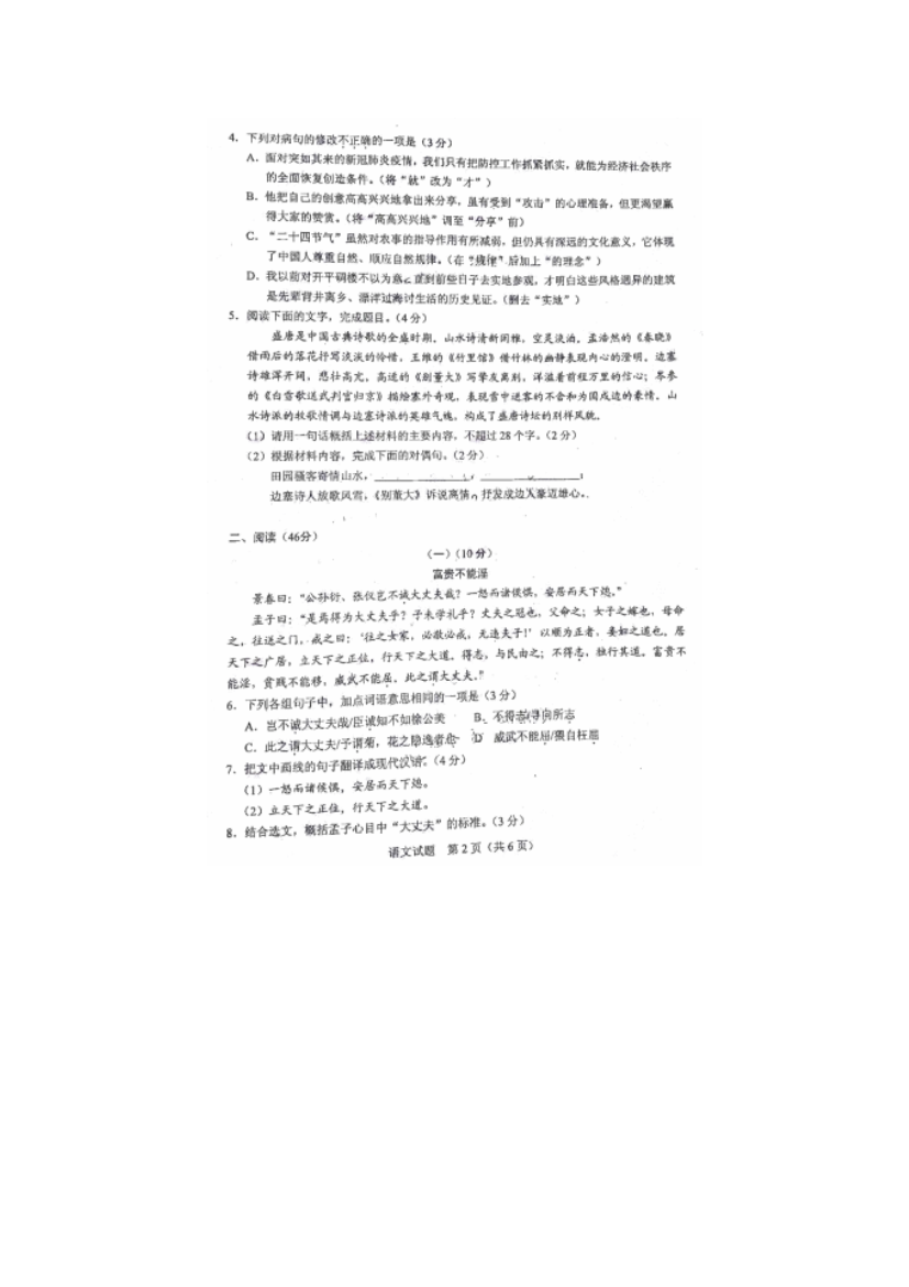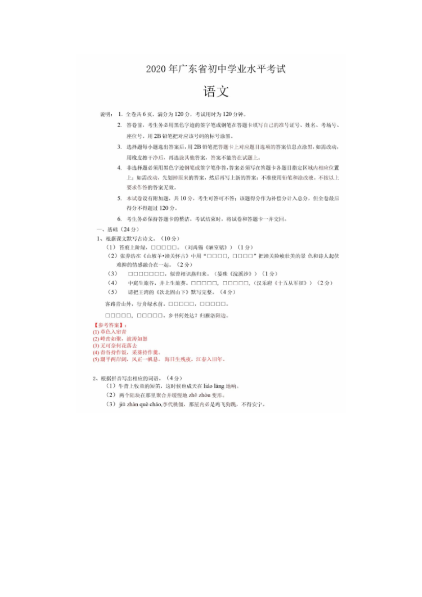 【文檔名稱】 2020廣東江門中考語文真題及答案(圖片版).doc