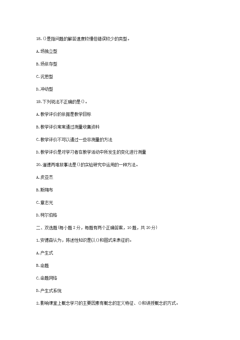 【文檔名稱】 2010年江西教師資格證中學(xué)心理學(xué)真題及答案(Word版).doc