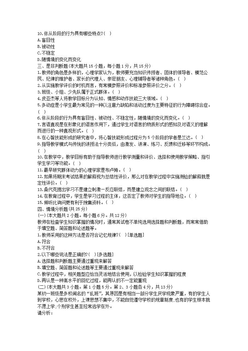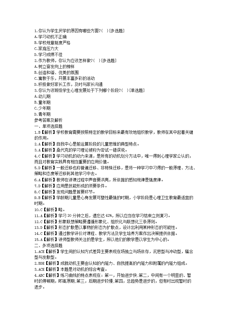 【文檔預覽】 無憂考網(wǎng)整理發(fā)布2012年江西教師資格考試小學心理學真題及答案(Word版),前五頁預覽如下: