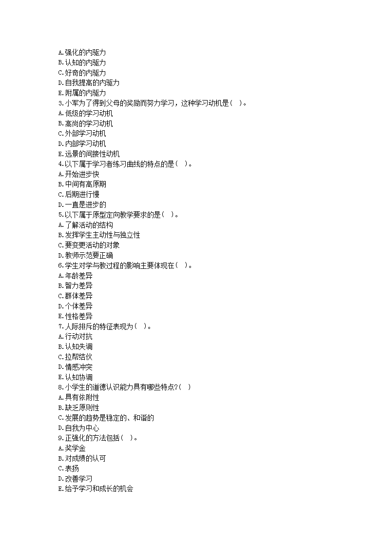 【文檔名稱】 2012年江西教師資格考試小學心理學真題及答案(Word版).doc