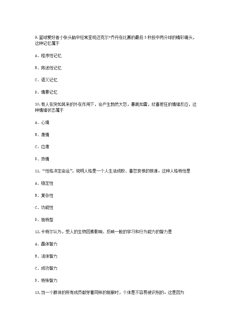 時(shí)間:2020-08-05 17:26:00 來(lái)源:無(wú)憂考網(wǎng) [字體:小 中 大]【文檔名稱】 2013上半年廣東教師資格考試小學(xué)心理學(xué)真題(Word版).doc