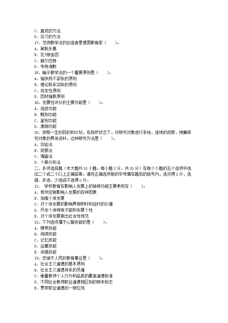 時(shí)間:2020-08-17 16:06:00 來(lái)源:無(wú)憂考網(wǎng) [字體:小 中 大]【文檔名稱】 2007年河南教師資格小學(xué)教育學(xué)真題及答案A(Word版).doc