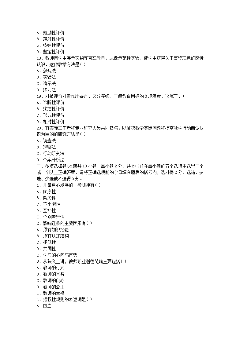 【文檔預(yù)覽】 無憂考網(wǎng)整理發(fā)布2010年河南教師資格小學(xué)教育學(xué)真題及答案B(Word版),前五頁預(yù)覽如下: