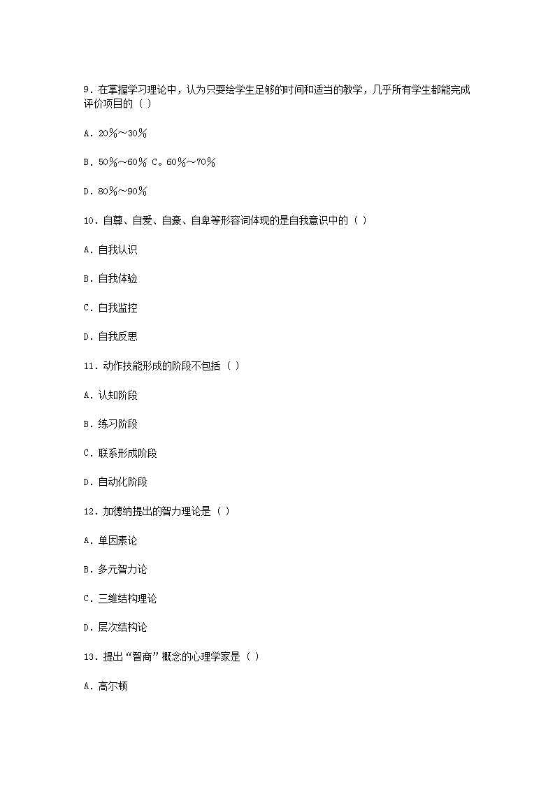 【文檔名稱】 2013年湖南教師資格中學(xué)心理學(xué)真題及答案(Word版).doc