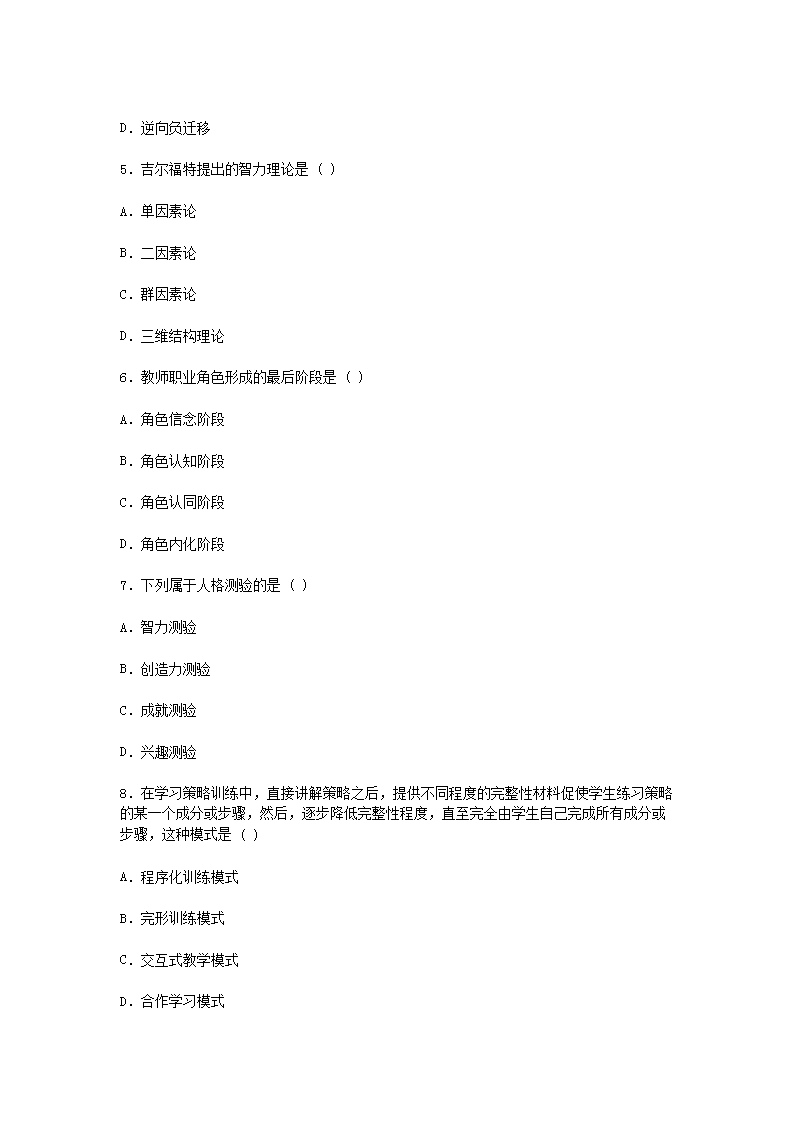 【文檔預(yù)覽】 無憂考網(wǎng)整理發(fā)布2013年湖南教師資格中學(xué)心理學(xué)真題及答案(Word版),前五頁預(yù)覽如下: