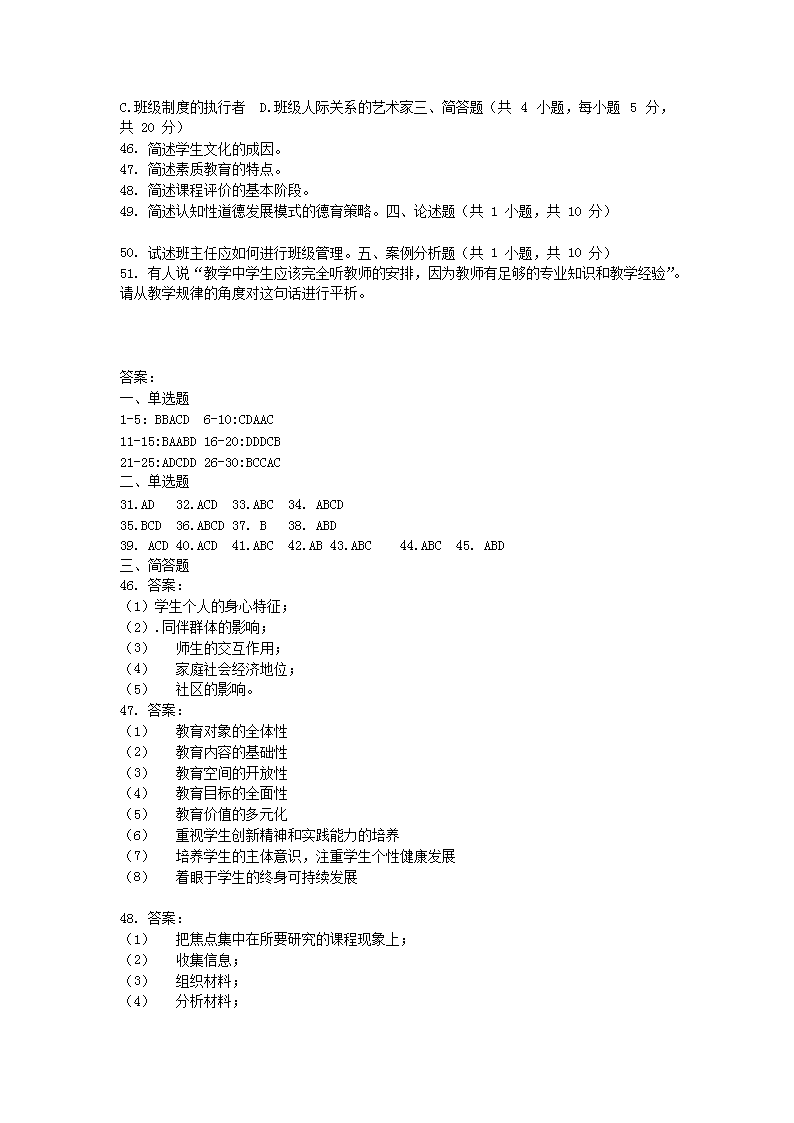 【文檔預(yù)覽】 無憂考網(wǎng)整理發(fā)布2019年內(nèi)蒙古教師資格考試教育學(中等)真題及答案(Word版),前五頁預(yù)覽如下:
