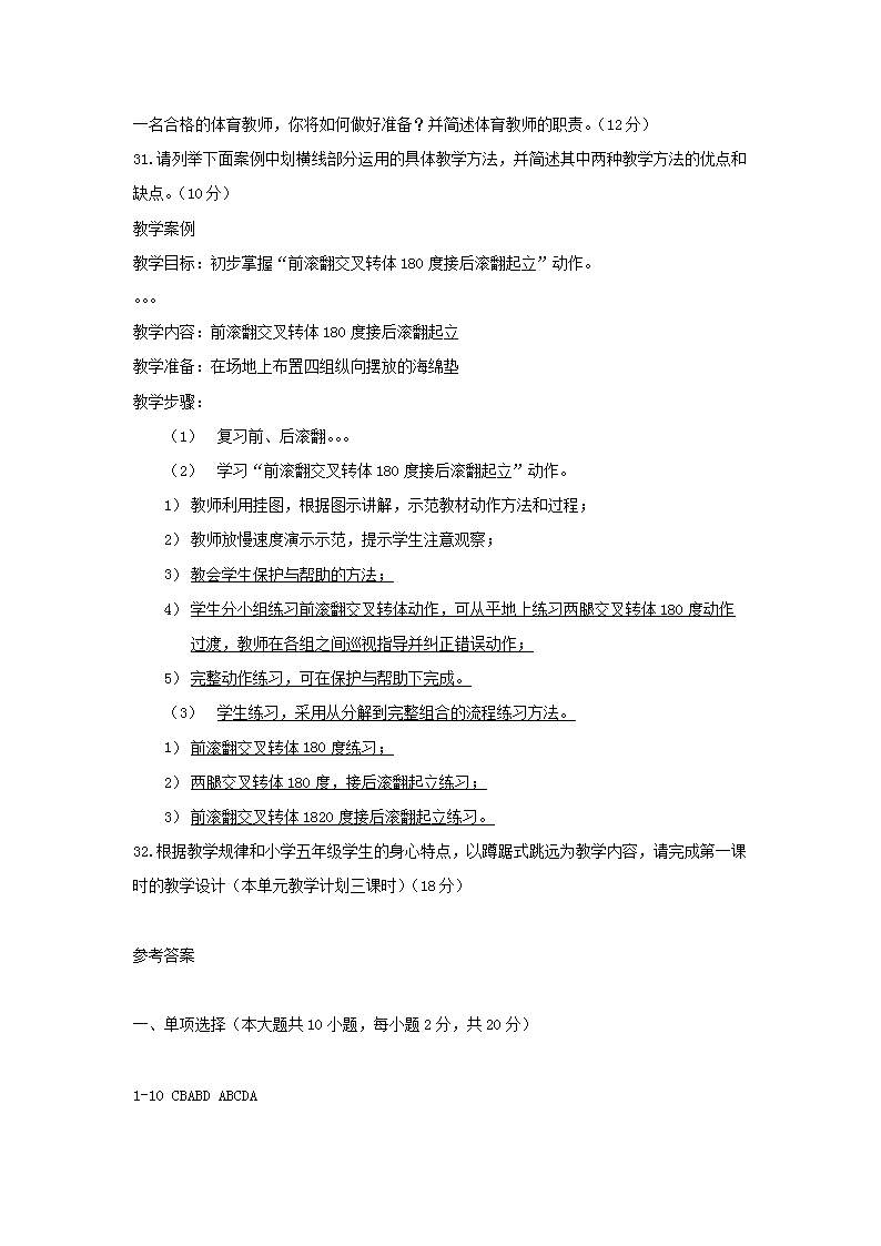 【文檔預(yù)覽】 無憂考網(wǎng)整理發(fā)布2010年福建教師招聘考試小學(xué)體育真題及答案(Word版),前五頁預(yù)覽如下: