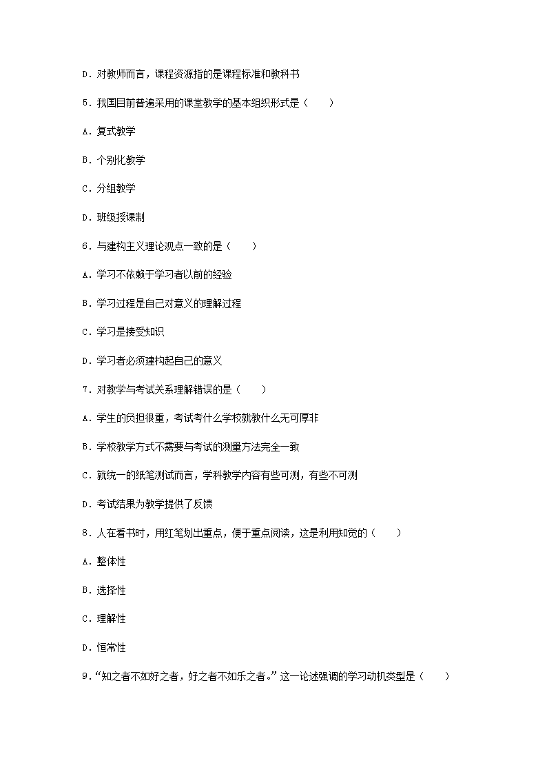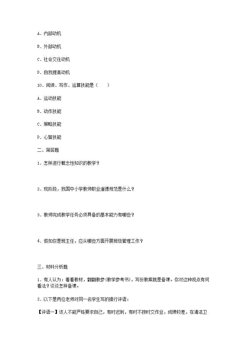 【文檔預覽】 無憂考網整理發(fā)布2009年安徽特崗教師招聘考試真題及答案(Word版),前五頁預覽如下: