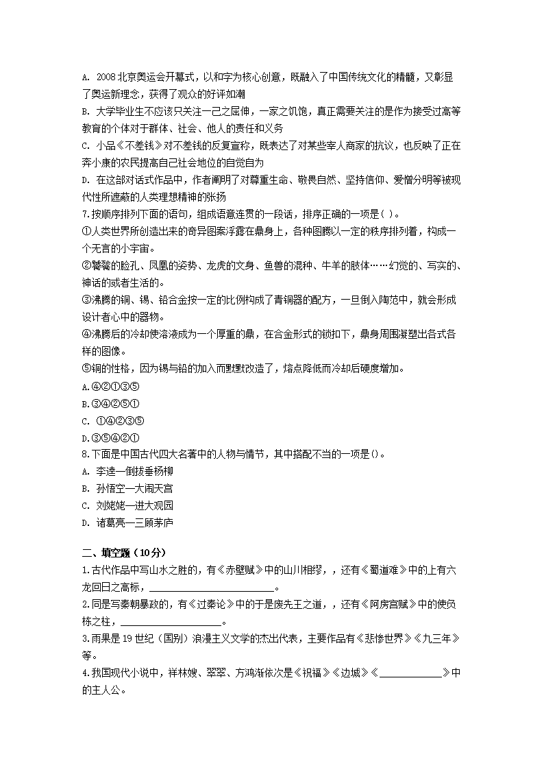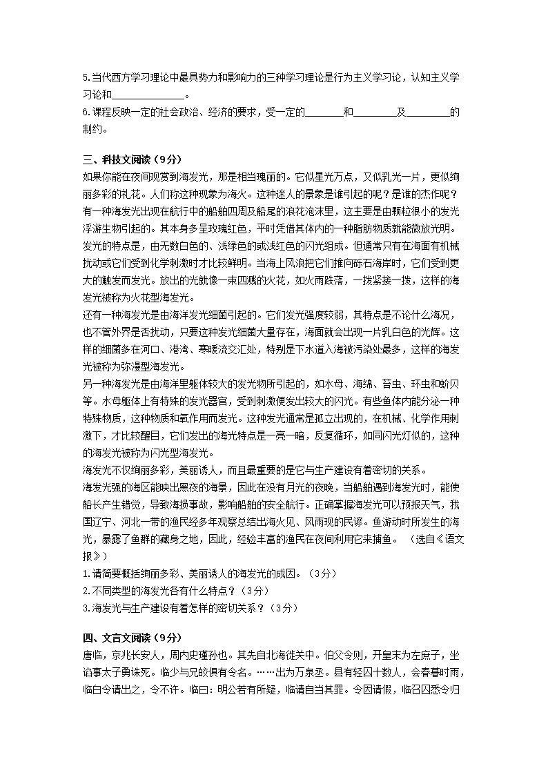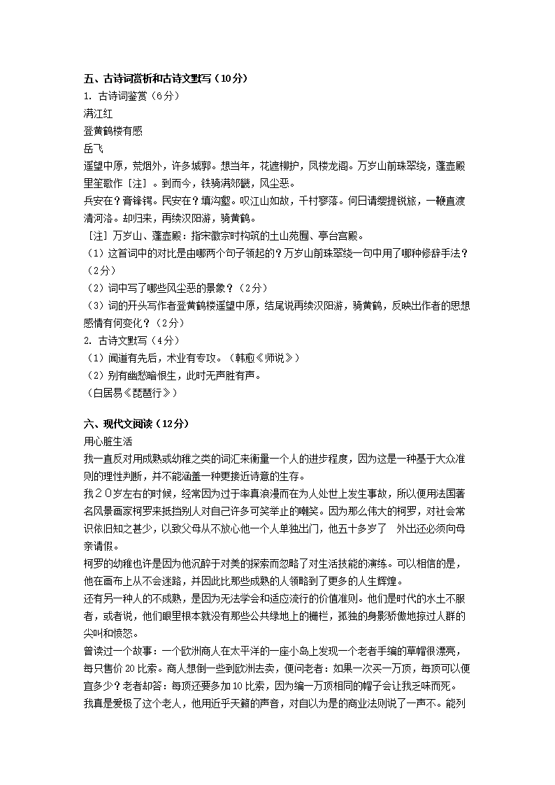 【文檔名稱】 2011年云南特崗教師招聘考試中學語文真題及答案(Word版).doc
